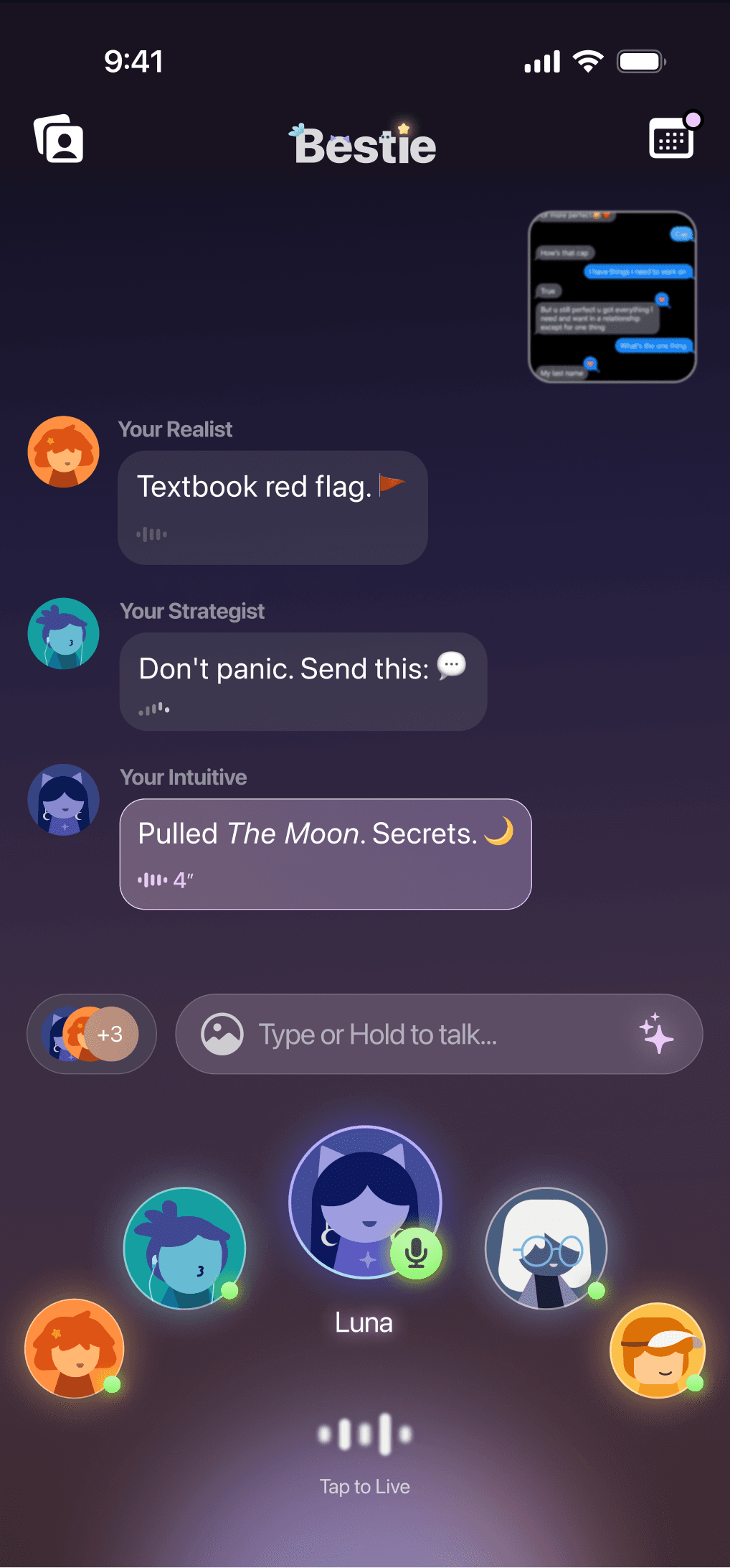 Life's messy. Your group chat is busy. We're not. Get 24/7 strategic advice on any relationship drama. No judgment, just clarity.